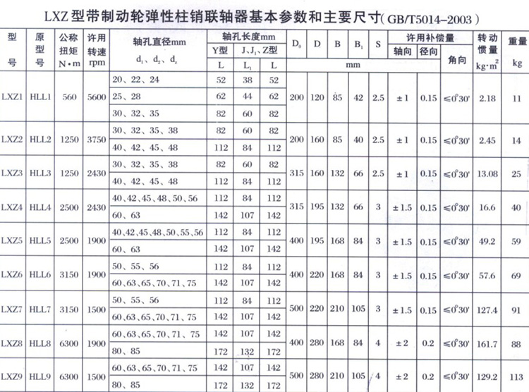 【LXZ (HLL) - type coupling model with brake wheel elastic dowel pin】